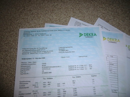 Als ich den Wagen gekauft habe hatte er noch "Rest-Tüv" bis September 2013 und eine Einzelbetriebserlaubnis für Deutschland lag auch dabei. Schließlich war er ja auch schon im Süddeutschen Raum angemeldet, alles gut soweit dachte ich.